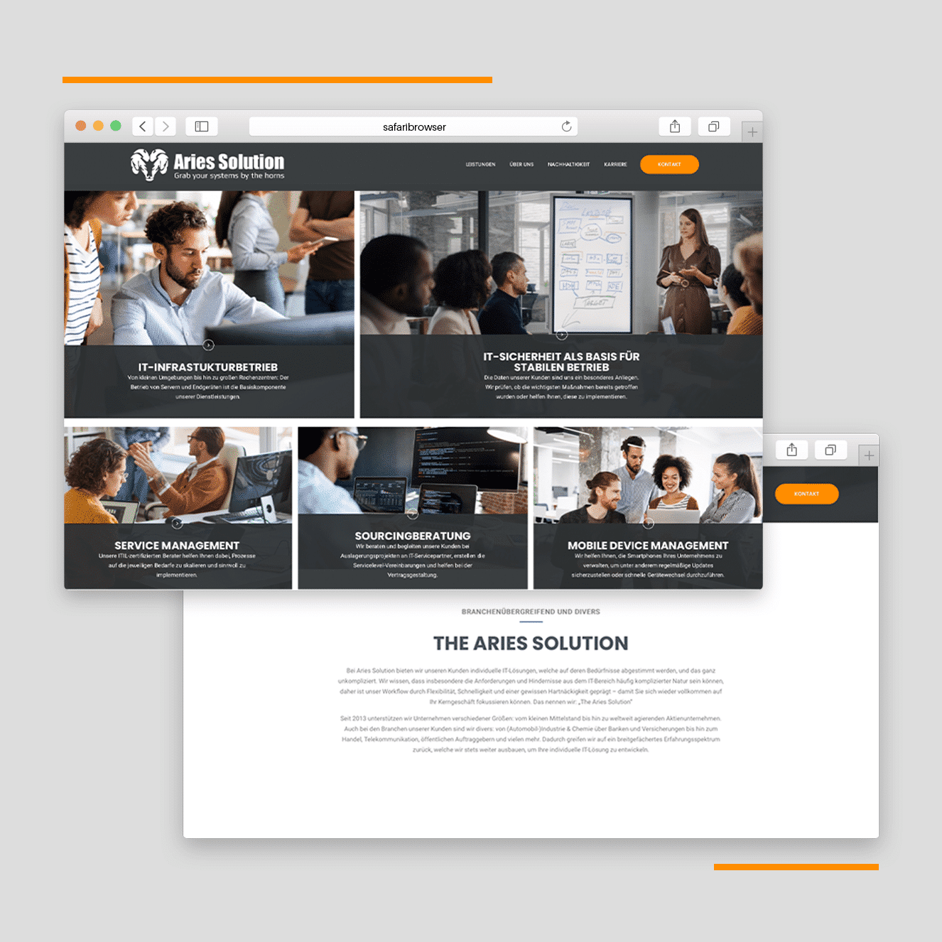 For Aries Solution GmbH in Oberderdingen, MATTER & LØUT executed a website relaunch using the WordPress CMS system. “The Aries Solution” represents individual and straightforward IT solutions for companies from various industries – and now the website reflects that as well. In close collaboration with the client, we fully handled the conception, design, and programming. Not only do the expressive, large-scale images give the website a modern, professional, and timeless look, but the strong color contrasts also contribute to it. As part of the text development, MATTER & LØUT also adapted the written content for the company’s new online presence.