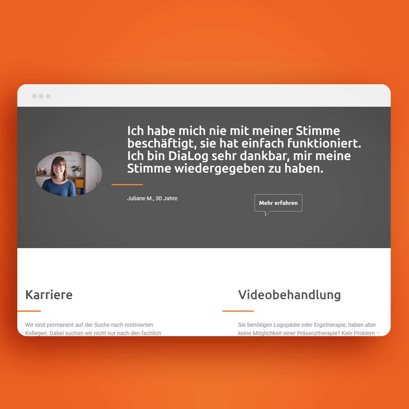 Matter & Lout setzte den Website Relaunch der DiaLog Praxis für Logopädie und Ergotherapie in Nürnberg im modernen und frischen Design um. Im Vordergrund des Kunden stand die Nutzerfreundlichkeit, welche wir in enger Zusammenarbeit mit der DiaLog Praxis sichergestellt haben. Das neue Layout bietet einen übersichtlichen Eindruck über die verschiedenen Behandlungsangebote. Zusätzlich lag beim DiaLog Website Relaunch der Fokus auf SEO-Themen. Deshalb optimierten wir unter anderem vom Kunden gelieferte Texte und versahen diese mit relevanten Keywords. Weiter macht das übersichtliche Design gezielte Informationsvermittlung auf der Website möglich. Eine zielgerichtete User Journey mit viel Weißraum, modernen Farben und fröhlichen Bildern ergeben nun eine neue, digitale Praxiswelt.