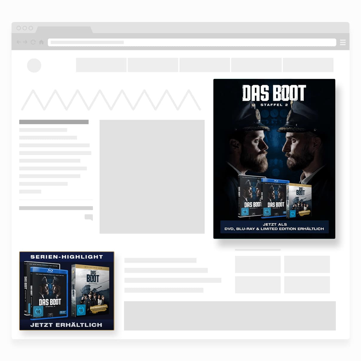 Für die WDR mediagroup führten wir für Das Boot – Staffel 2 das Performance Marketing durch. Dafür haben wir aus bestehendem Videomaterial diverse Ad Creatives für Social Media und (Premium) Display Banner erstellt. Gleichzeitig betreuten wir die Schaltung dieser Ad Creatives auf Facebook, Instagram, Google Display und Amazon DSP über den gesamten Kampagnenzeitraum. Flankierend übernahmen wir währenddessen das Community Management und betreuten die Social Kanäle des Serien-Highlights. Zu der Performance Marketing Betreuung zählen wir auch das stetige Reporting an den Kunden im Rahmen eines Jour-Fixes.