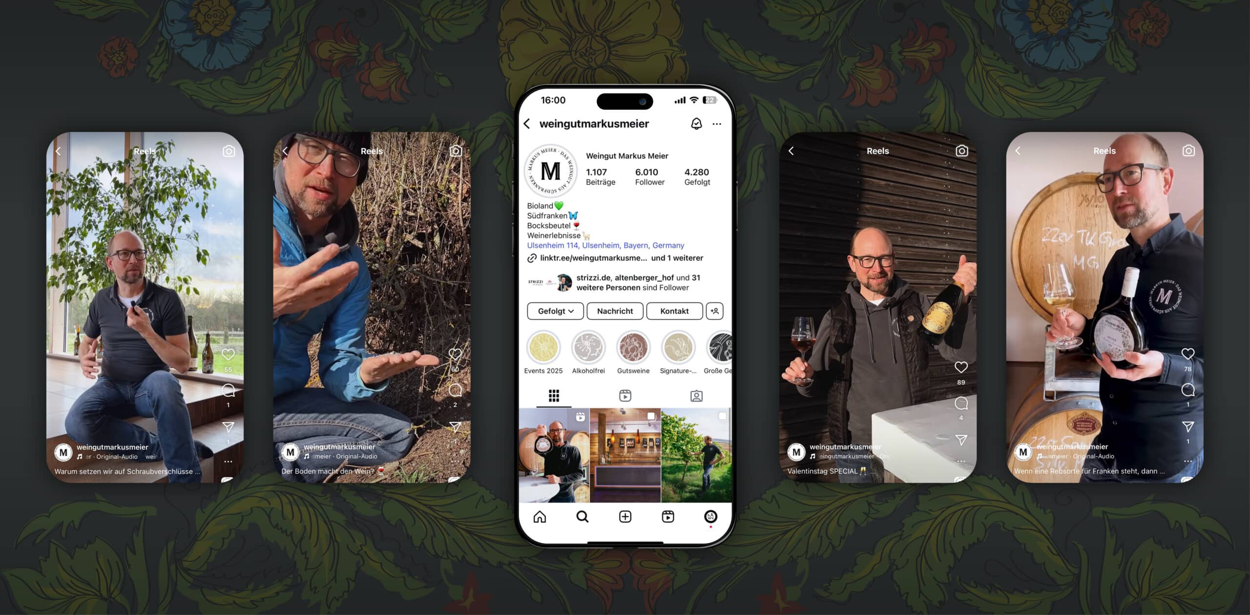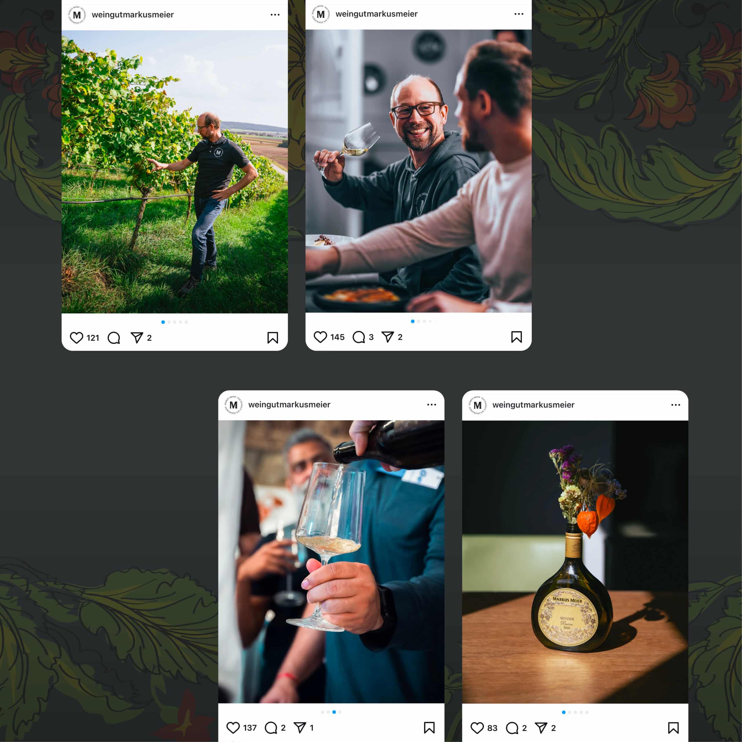 Für das Weingut Markus Meier übernehmen wir die kontinuierliche Betreuung der Social Media Kanäle Facebook und Instagram. Ziel ist es, die Sichtbarkeit und Interaktion zu steigern sowie langfristig mehr Käufe zu generieren. Die Hauptzielgruppe umfasst Weinliebhaber, Gastronomie, den Fachhandel sowie Endverbraucher mit Interesse an nachhaltigem Genuss.