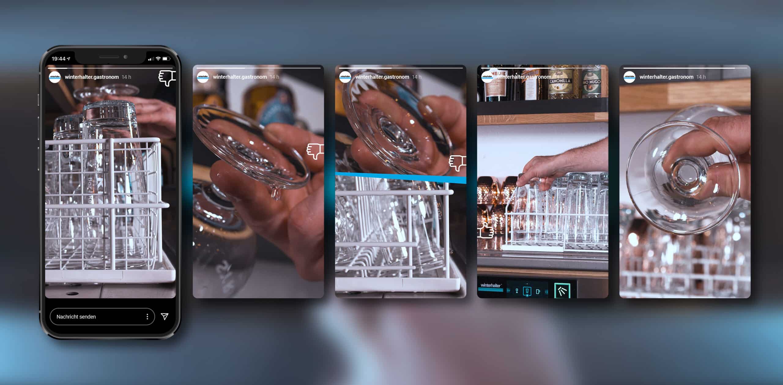 Für die Produktion von zwölf internationalen Social Media Clips zum Thema “Richtig Spülen” für die Winterhalter Gastronom GmbH war Weder & Noch federführend. Dabei wirkten wir im Vorfeld konzeptionell mit und übernahmen bei der Umsetzung an zwei Produktionstagen das Produktionsmanagement. Im Anschluss finalisierten wir die Clips in der Post-Produktion. Die Anforderungen: die Videos sollten sprachneutral funktionieren und der Zuschauer innerhalb kürzester Zeit den Unterschied zwischen richtig und falsch verstehen. Aus diesem Grund haben wir zum einen auf zwei geteilte Screens zurückgegriffen. Zusätzlich verwendeten wir in der Post Production das unverkennbare “Daumen hoch/runter”-Symbol. Die Social Media Clips sind auf allen internationalen Kanälen von Winterhalter sowie auf der Homepage zu sehen.