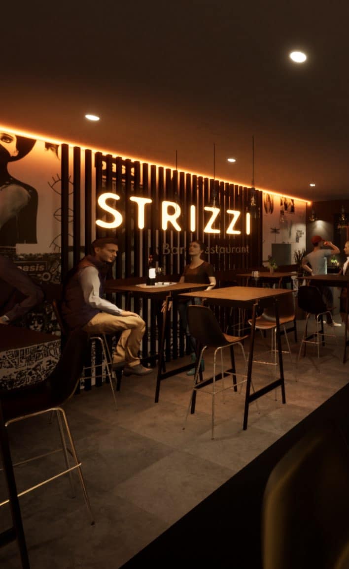 Im Rahmen des Social-Media-Supports unterstützte MATTER & LØUT die Aktivitäten rund um den Start und den Aufbau der Facebook- und Instagram-Kanäle. Während der Umbauphase erhielten zukünftige Gäste Einblicke hinter die Kulissen; Aktionen wie ein Voting zur „Wall of Fame“ steigerten die Interaktionsrate, erhöhten die organische Sichtbarkeit und sorgten für ein gesundes, stetiges Wachstum der Followerzahl. Dazu übernahm das Team die Konzeption des Redaktionsplans, die textliche und grafische Aufbereitung sowie Social Media- und Community-Management. Parallel verantwortete MATTER & LØUT die Planung und Konzeption für Interior Design und Ausstattung und verwandelte ein rustikales Gasthaus in ein modernes Restaurant mit Altbaucharme in der Altstadt. Ein dunkles Farbkonzept mit bunten Akzenten sowie eine Stilmischung aus classy, industrial und modernen Designs prägen den Look; als Eyecatcher wirkt die Bar durch einen Spiegel an der Decke und das dahinterliegende Spirituosenregal optisch größer, ergänzt durch ausgestellte Motorräder und Skateboards. Zur Abrundung des Erscheinungsbilds entstanden ausdrucksstarke Illustrationen für das Corporate Design, die als wiedererkennbares Element Print- und Online-Werbemittel durchziehen. Ergänzend realisierte MATTER & LØUT die Website mit integriertem Take-Away-Shop: Ein cleanes Screendesign mit den STRIZZI-Illustrationen, eine Speise- und Getränkekarte als Custom Post Type sowie Funktionen zum Buchen von Events, Reservieren von Tischen und Bestellen von Essen nach Hause.