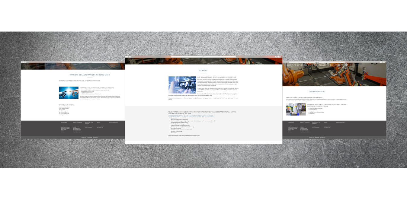 Die Automations Robotic GmbH ist ein Unternehmen mit mehr als 10 Jahren Erfahrung in den Bereichen Robotik und Automation. Die Kernkompetenzen des Betriebs liegen beim automatisierten Anlagenbau und dem Schaltanlagen- und Schaltschrankbau. Wir wurden mit der visuellen Konzeption, Gestaltung sowie der Programmierung und finalen Umsetzung bis zum Go-Live beauftragt, um für das Unternehmen einen maximalen Wiedererkennungswert und eine optimale Markenpräsenz zu schaffen.