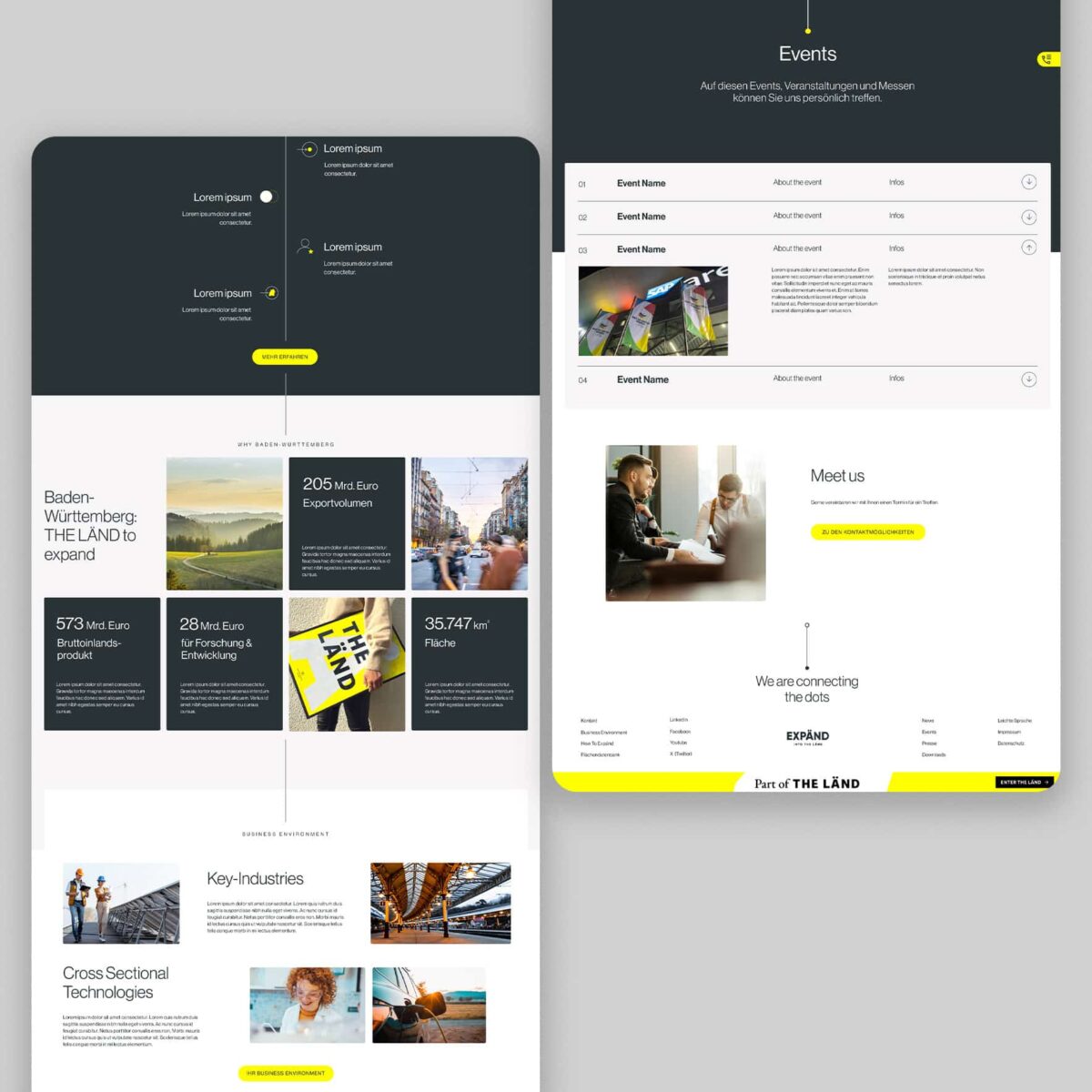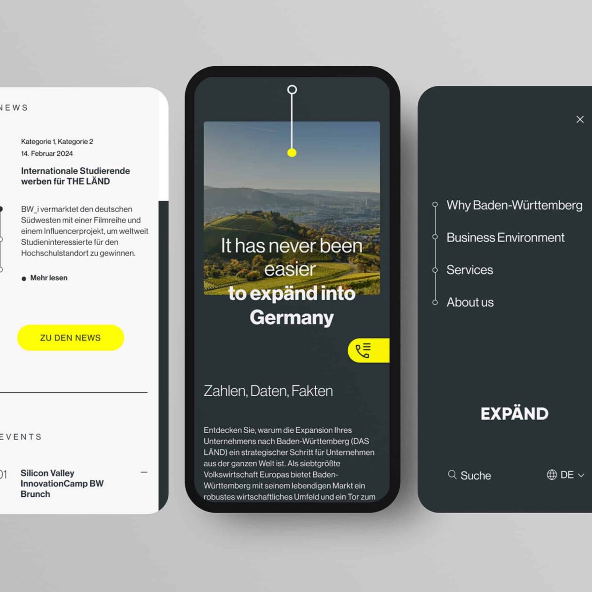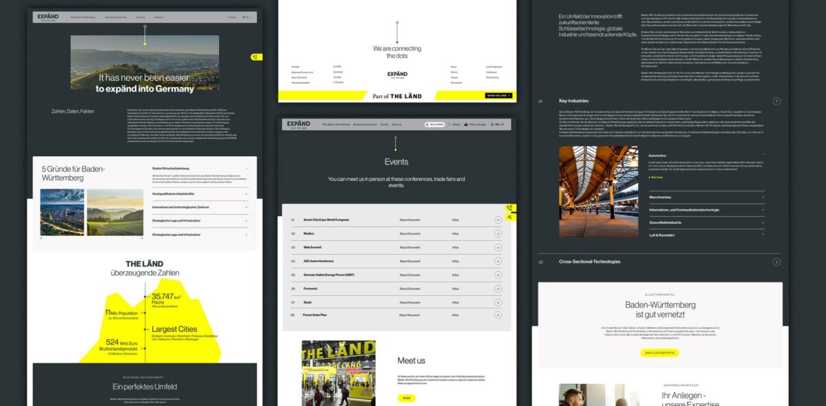 Für Baden-Württemberg International habt MATTER & LØUT im Rahmen einer Ausschreibung den Investorenbereich neu positioniert und dafür eine eigenständige Marke entwickelt, die sich zugleich nahtlos in die Dachkampagne THE LÄND einfügt. Neben dem Rebranding entstand ein moderner, zukunftsorientierter Webauftritt mit Fokus auf schnelle Orientierung und gezieltes Finden relevanter Informationen.