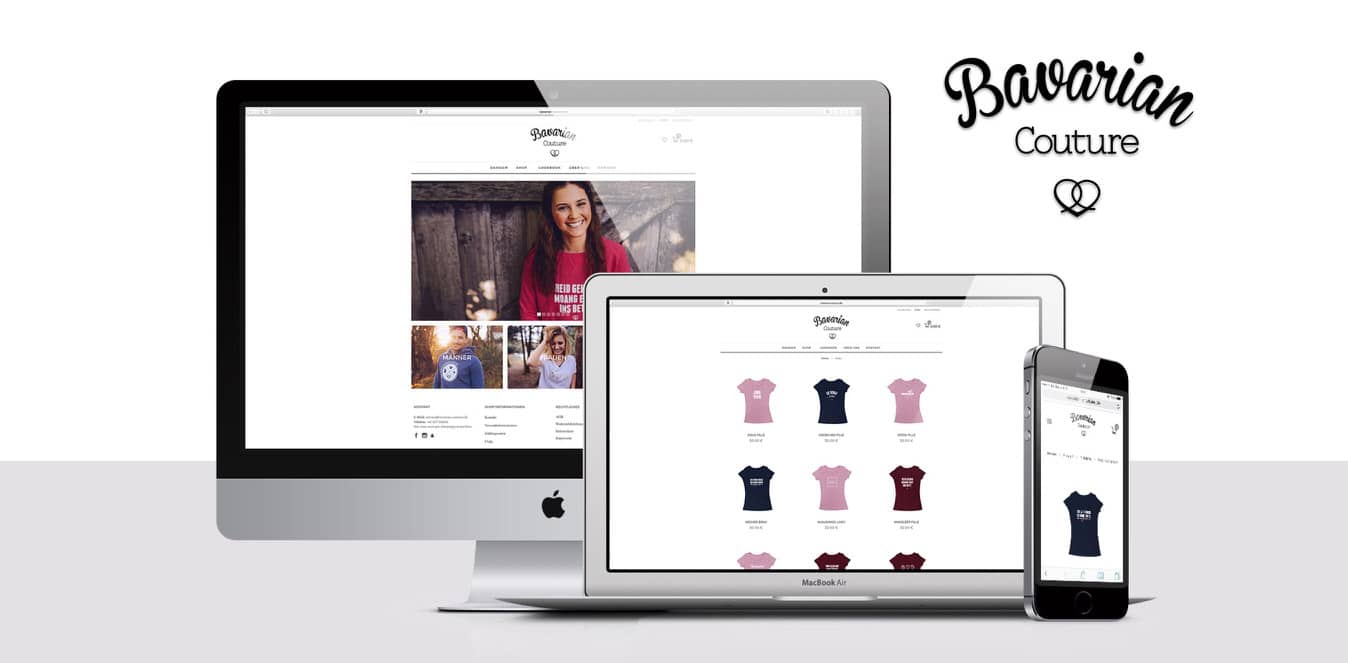 Das bayerische Gute-Laune-Label Bavarian Couture besticht mit frechen Sprüchen und coolen Schnitten. Zusammen mit Weder & Noch wurde ein neuer Online Shop mit neuem Design und neuem System gestaltet, das dem Nutzer ein optimales Shoppingerlebnis bietet.