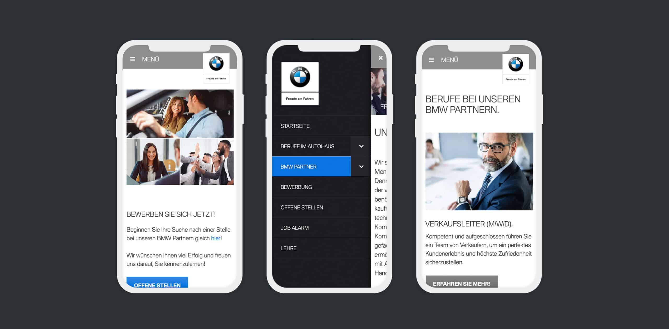 BMW Austria erhielt Unterstützung beim Re-Design der Karriereseite für ihre Handels- und Serviceorganisation. Neben Verbesserungen an Interface und User Experience sowie Anpassungen beim Content, wurde der Bewerbungsprozess der Seite komplett überarbeitet und sowohl für Händler als auch Bewerber optimiert. So ist es für den Händler nun möglich über ein eigens konzipiertes Online-Portal ganz einfach Stellenanzeigen zu bestellen, um dadurch auf der Website möglichst viele potenzielle Bewerber anzusprechen.