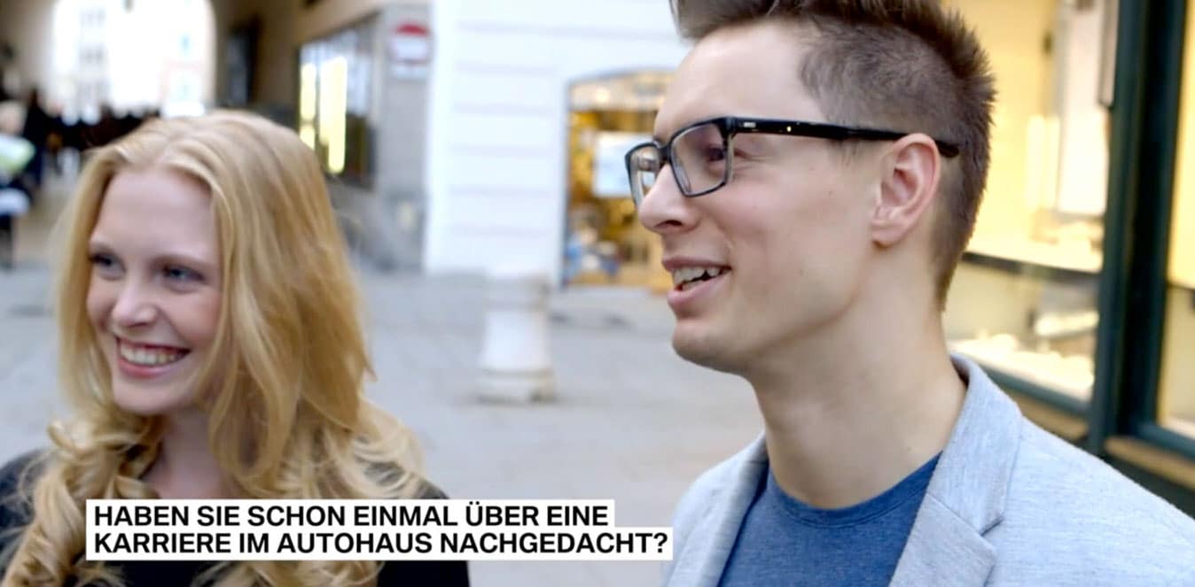 In den Straßeninterviews haben wir junge Menschen nach ihren Zielen und Anforderungen an ihren Arbeitgeber befragt. Es war deutlich zu erkennen, dass sich diese in den letzten Jahren deutlich geändert haben und der Wandel vom Arbeits- zum Bewerbermarkt sehr weit vorangeschritten ist. Unsere Filmcrew hatte viel Spaß und sogar der Wettergott war uns diese beiden Tage gnädig gestimmt.