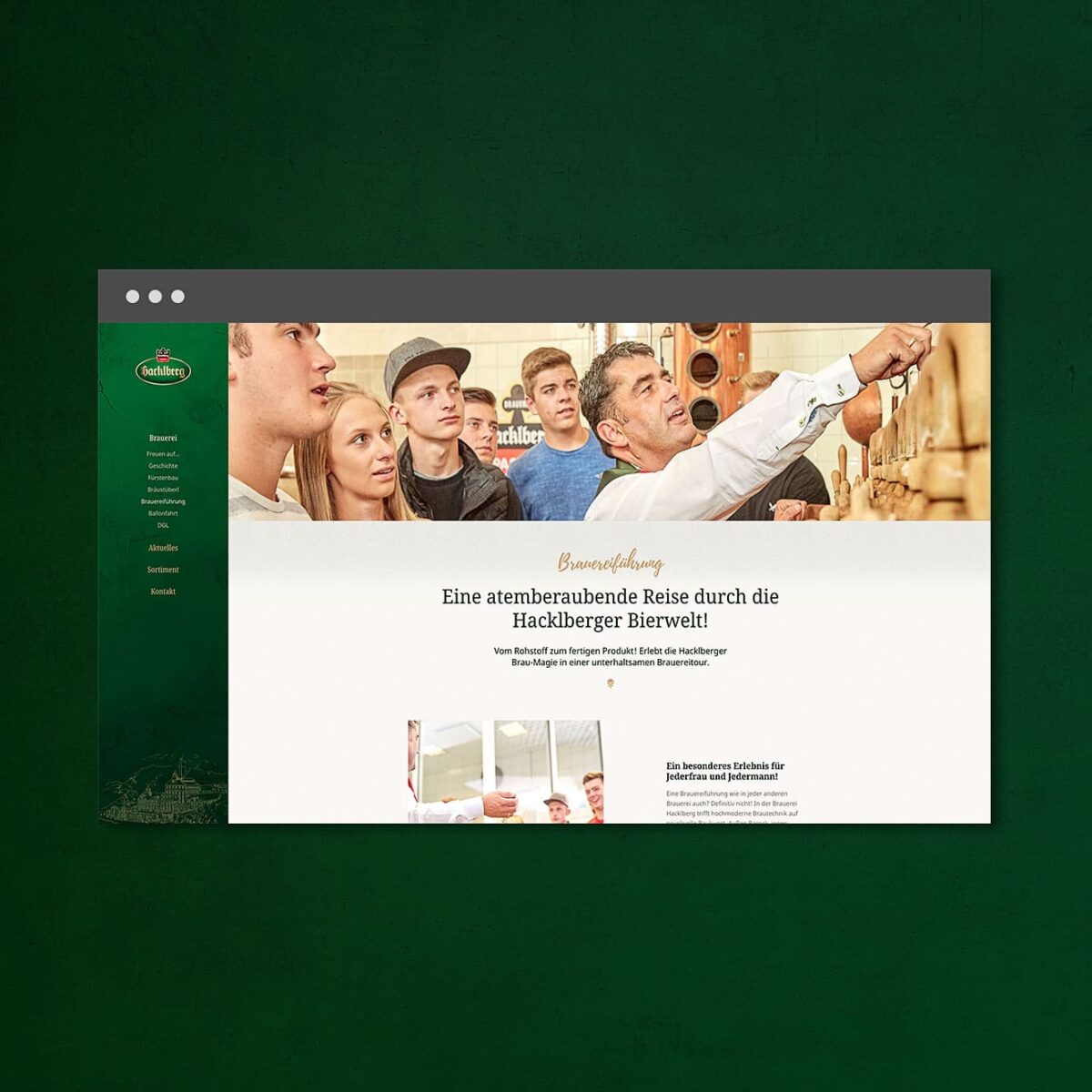 Die Brauerei Hackelberg aus Passau ist überregional für seine hervorragenden Biere bekannt. Zum Relaunch der neuen Website war MATTER & LØUT mit der Programmierung und technischen Umsetzung betraut und stande außerdem bei einigen UX Rückfragen tatkräftig zur Seite. Einen Besonderen Fokus haben wir dabei auf die Startseite mit Post-Grid gelegt, die sowohl aktuelle, als auch statische Inhalte dynamisch darstellt und diese elegant nachlädt. Um jede Unterseite interessant zu gestalten, sind in die Website viele kleine Details geflossen, darunter beispielsweise liebevolle Animationen, Parallaxelemente und und ein Bierfilter, der nach Geschmack sortiert.