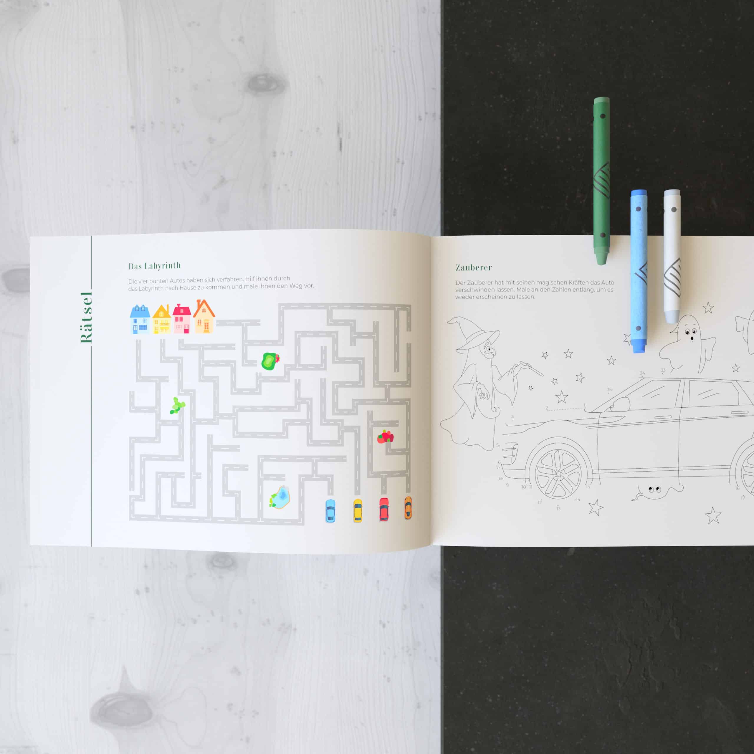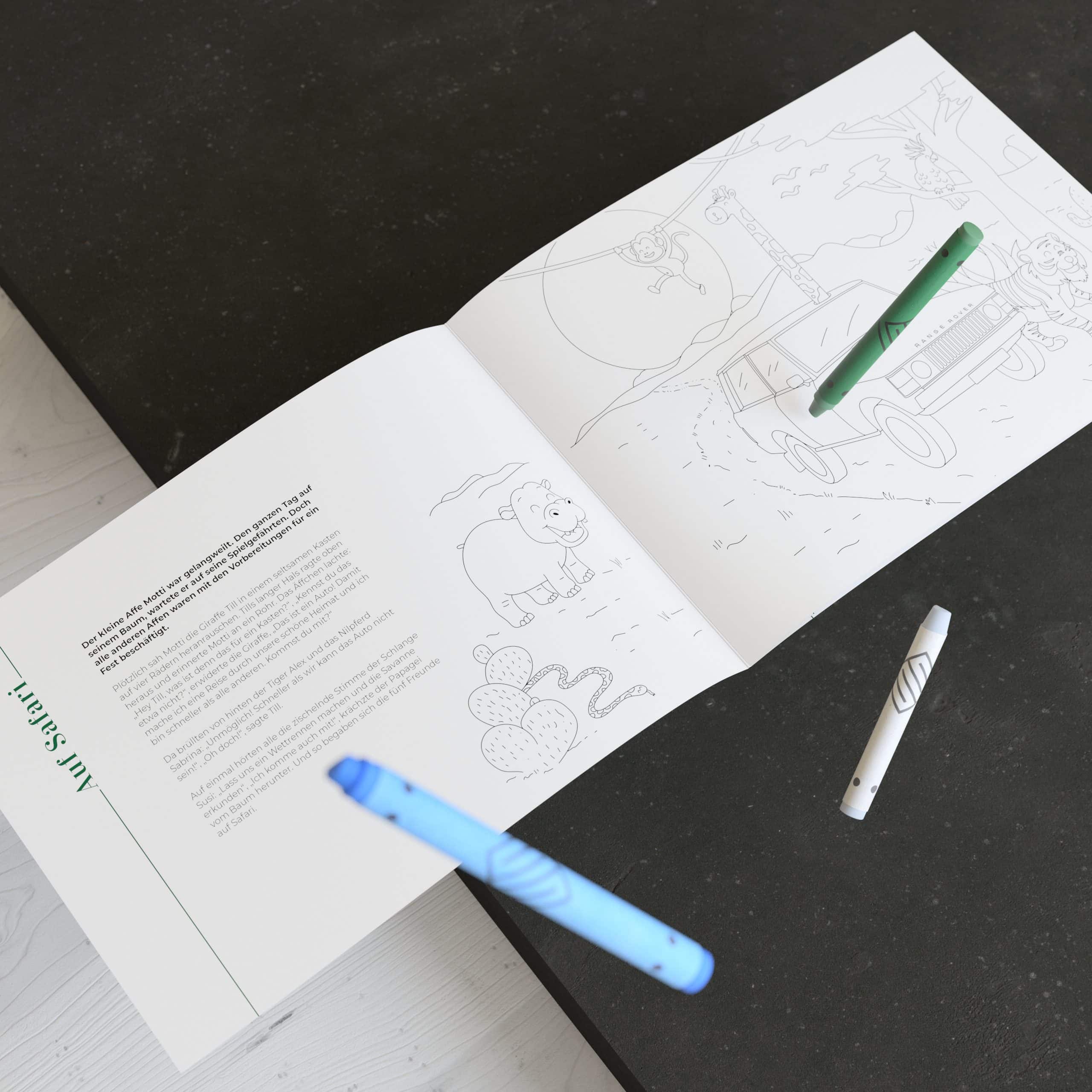Was machen die Kleinen bei einem Besuch bei British.Cars in der Drygalsky-Allee in München während die Eltern den Service und die Beratung in Anspruch nehmen? Seit Neuestem können sich die Kinder unserer Kunden mit dem wunderbaren Malbuch made by Weder & Noch die Zeit vertreiben. Von der Konzeption der Ausmalbilder und des Rätselspaßes bis hin zur Druckproduktion, haben wir für die Kinder ein Medium geschaffen, dass Groß und Klein begeistert.