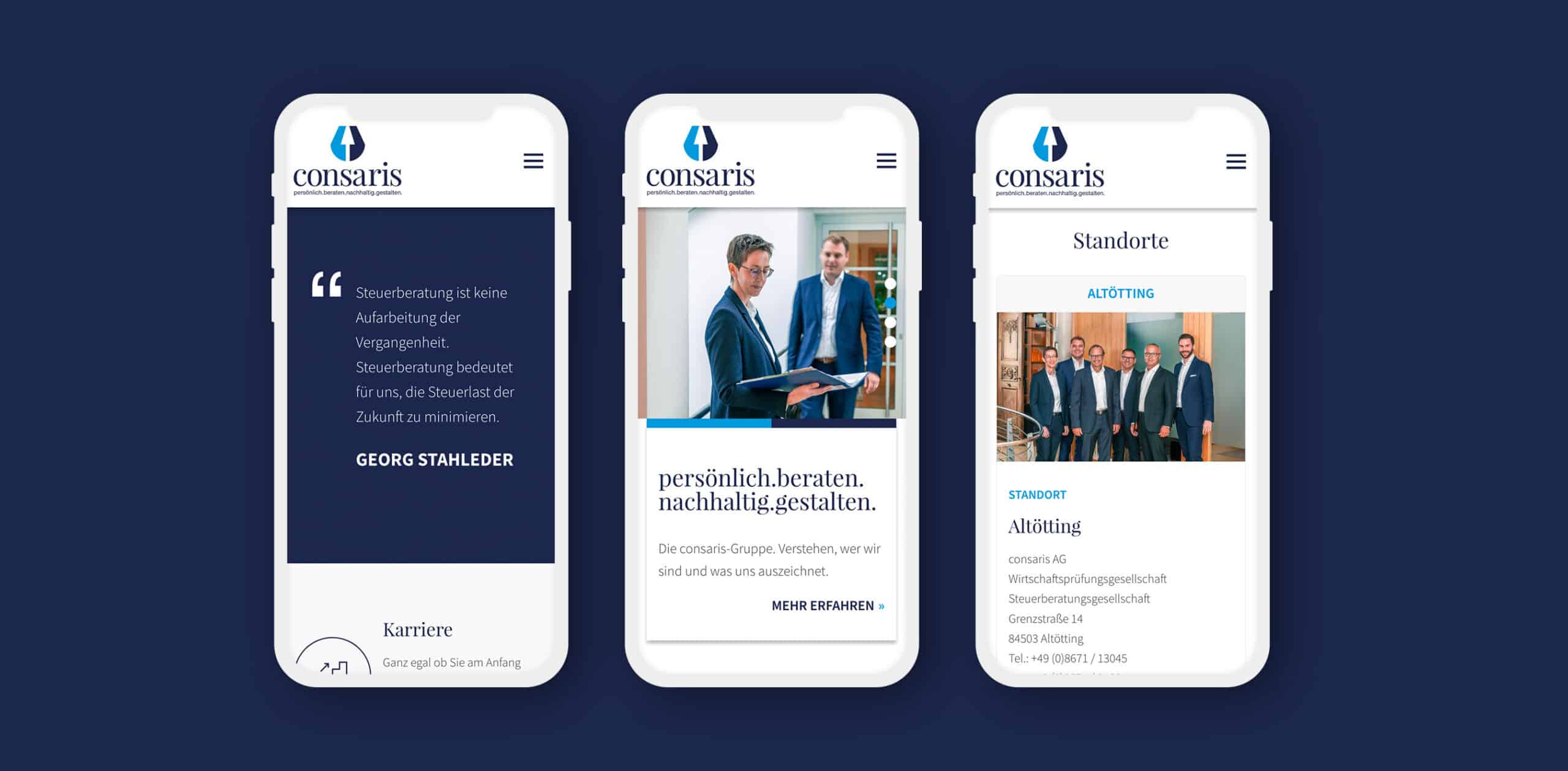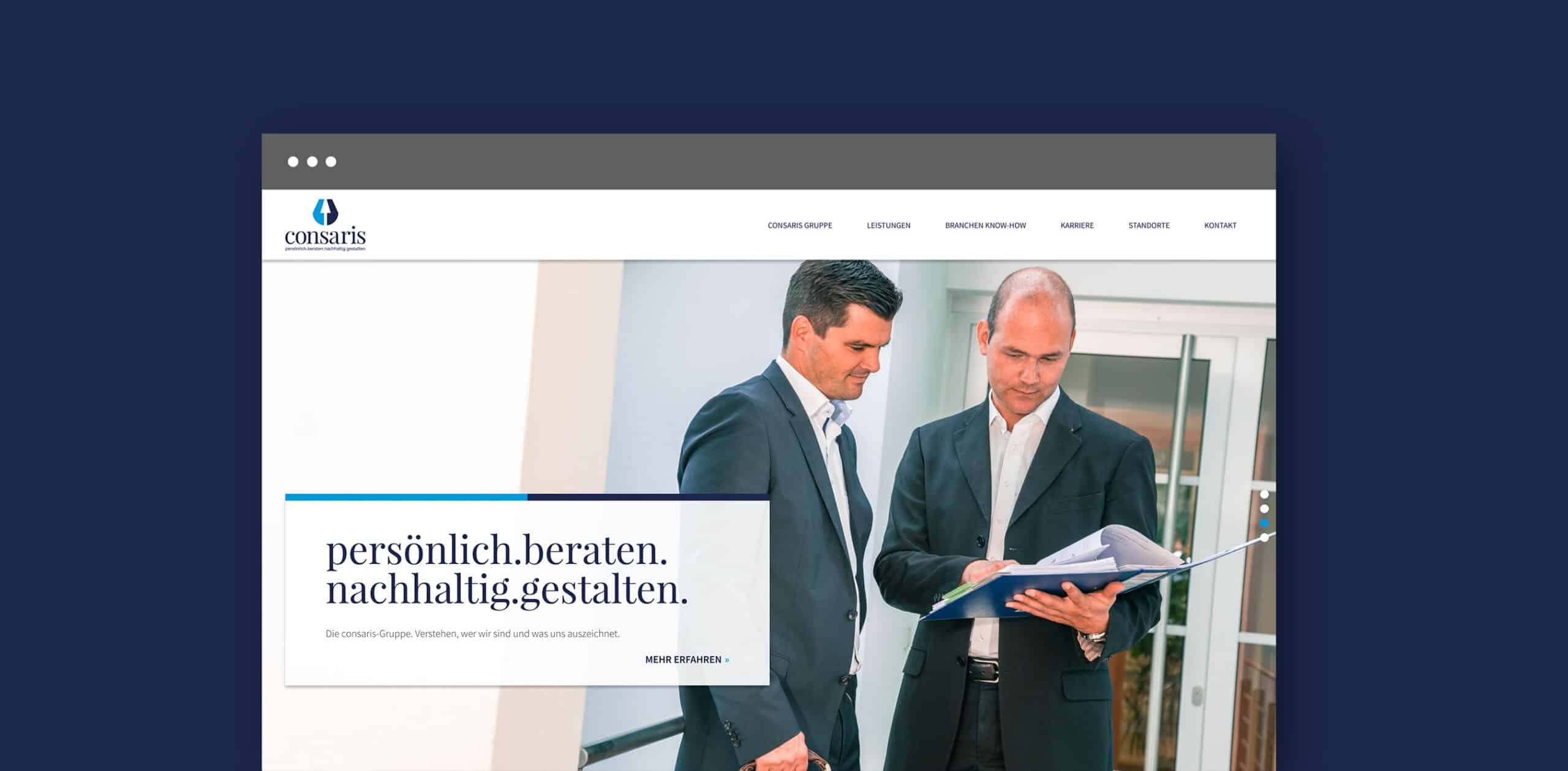 Consaris Website und Fotoshooting Kategorie Grafikdesign & LayoutKonzeption & KreationStrategie & BeratungWebdesign & Entwicklung Kunde Consaris Website und Fotoshooting Beschreibung Project team Zurück VELUX Stellenanzeigen inkl. Fotoshooting Weiter BERING Instagram Story