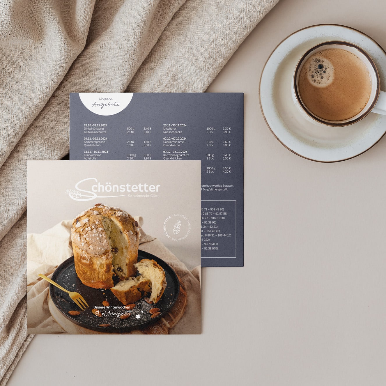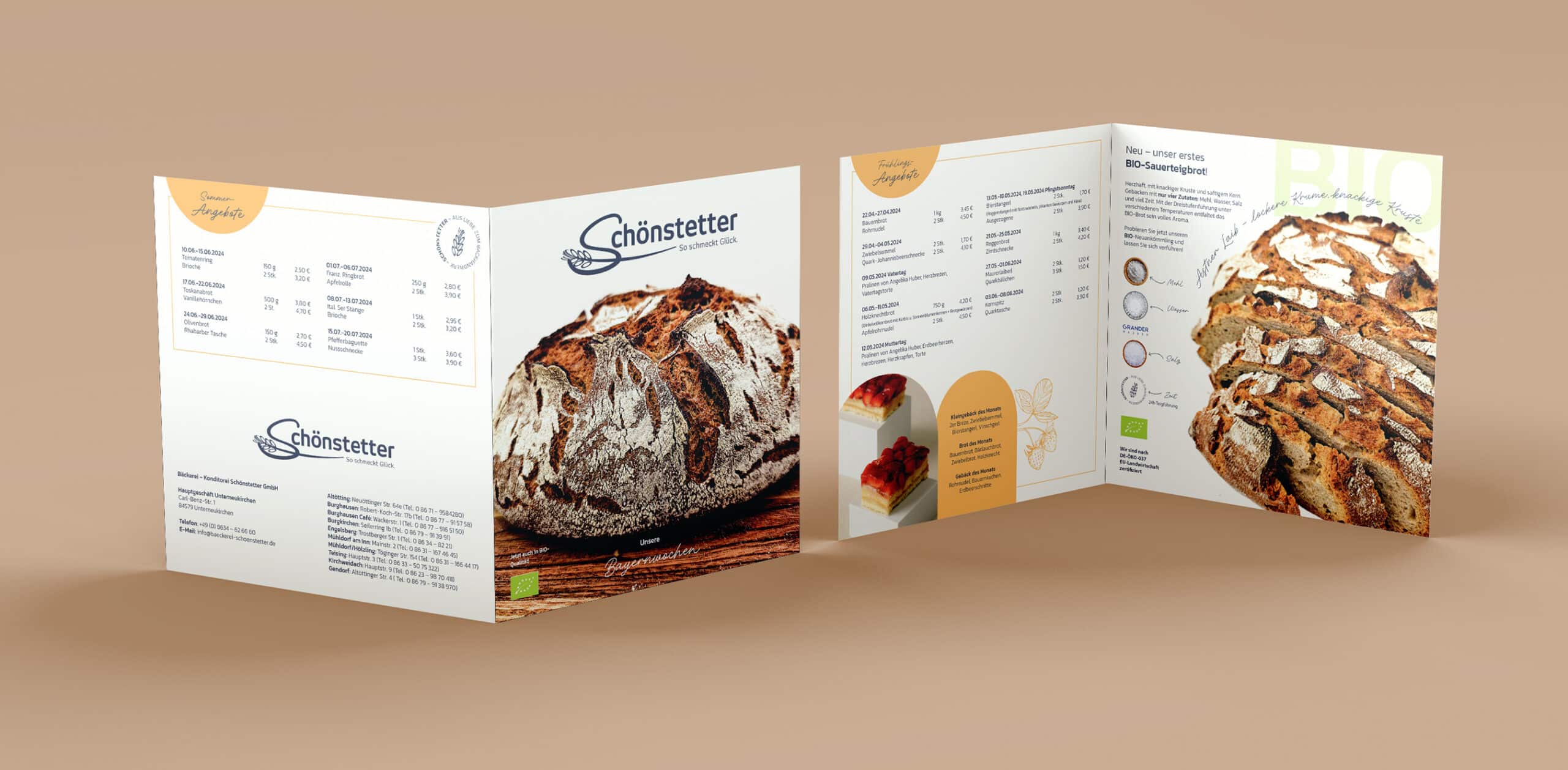 Für die Bäckerei Schönstetter durften wir die Gestaltung der aktuellen Angebotsflyer übernehmen. Wir waren verantwortlich für die gesamte Konzeption, das kreative Design sowie das Projektmanagement – von der ersten Idee bis zur finalen Umsetzung.