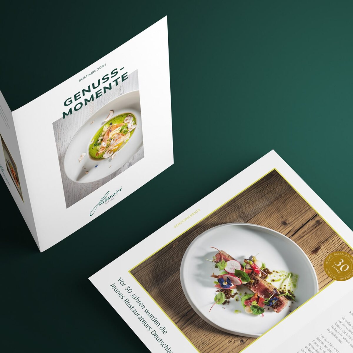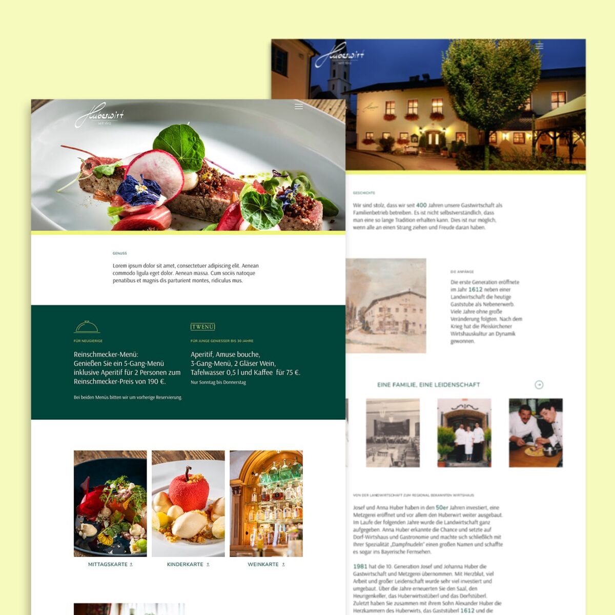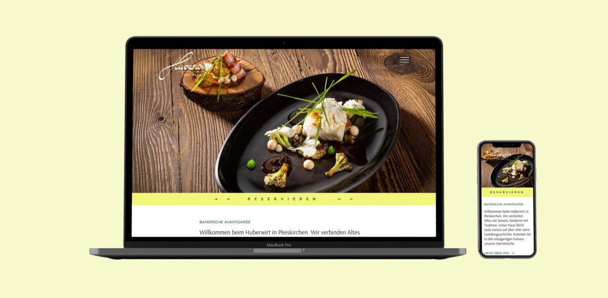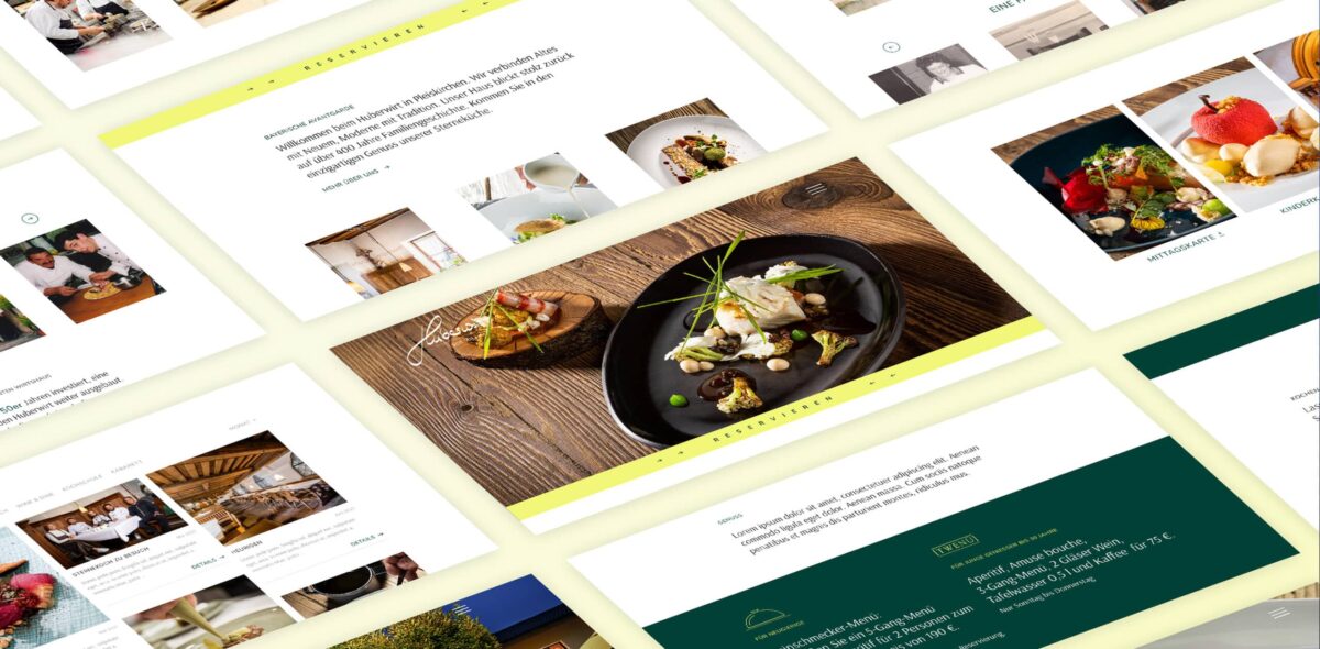 Der Huberwirt ist seit 1612 in Pleiskirchen ansässig und steht mit seinem Guide-Michelin-Stern für bayerische Avantgarde. 2021 beauftragte Chefkoch und Inhaber Alexander Huber MATTER & LØUT nach mehreren gemeinsamen Printprojekten mit dem Relaunch der Website sowie der Gestaltung der „Genussmomente“-Broschüren.