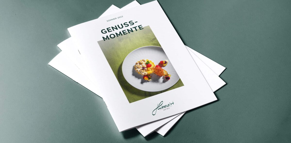 Im Rahmen des Website-Relaunchs wurde die Seite technisch auf den aktuellen Stand gebracht, für mobile Endgeräte optimiert und um einen Online-Shop erweitert. Eine durchdachte User Journey, ein zeitgemäßer Look mit viel Weißraum und stimmungsvolle Bildwelten schaffen eine neue digitale Genusswelt. Ergänzend übernahm MATTER & LØUT die Gestaltung und das Produktionsmanagement der „Genussmomente“-Broschüre sowie die Überarbeitung nach neuen Corporate-Design-Vorgaben. Das Editorial Design stellt die Verbindung von Tradition und Moderne in den Mittelpunkt und präsentiert Highlights, Termine und Formate wie Kochkurse, Gastköche, Brunch-Termine und Events wie das „6-Hands-Dinner“ in stilvoller Gestaltung.