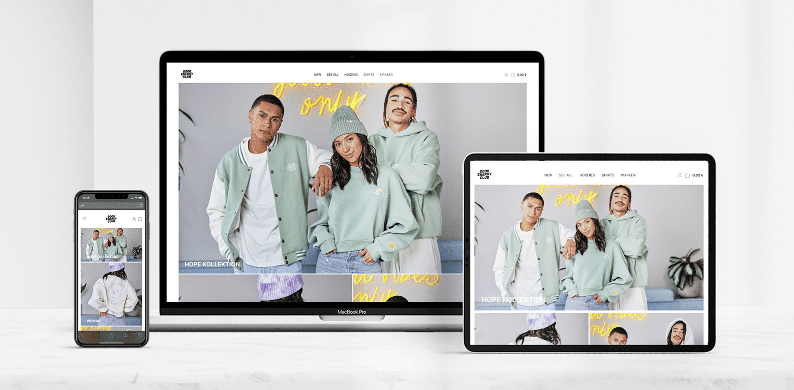 Die Jungs von Suck my Shirt haben ein größeres Rebranding gewagt. Für den Good Energy Club durften wir einen neuen Shopware-Shop umsetzen. Mithilfe des Rebrandings konnten die Jungs die Eigenmarken Good Energy Club, Streetclub und SKMST unter einem neuen Dach vereinen – wir bauten in Zusammenarbeit mit ihnen den neuen Shopware-Shop auf. Neben einer Anbindung zum ERP System inklusive Lagerbestandsübertragung hat der Shop ein schlichteres und aufgeräumteres Design erhalten. Mit Hilfe einer Countdown Funktion ist es möglich neue Produkte vorab einzuplanen und zu einem fixen Termin zu verkaufen. Auch für den User ist das ein praktisches Add-On, um Neuerscheinungen im Blick zu haben. Außerdem haben wir eine Variantenverfügbarkeit im Listing der Artikel eingebaut und eine Direktkauffunktion integriert. Und wir finden: Das Ergebnis kann sich sehen lassen!