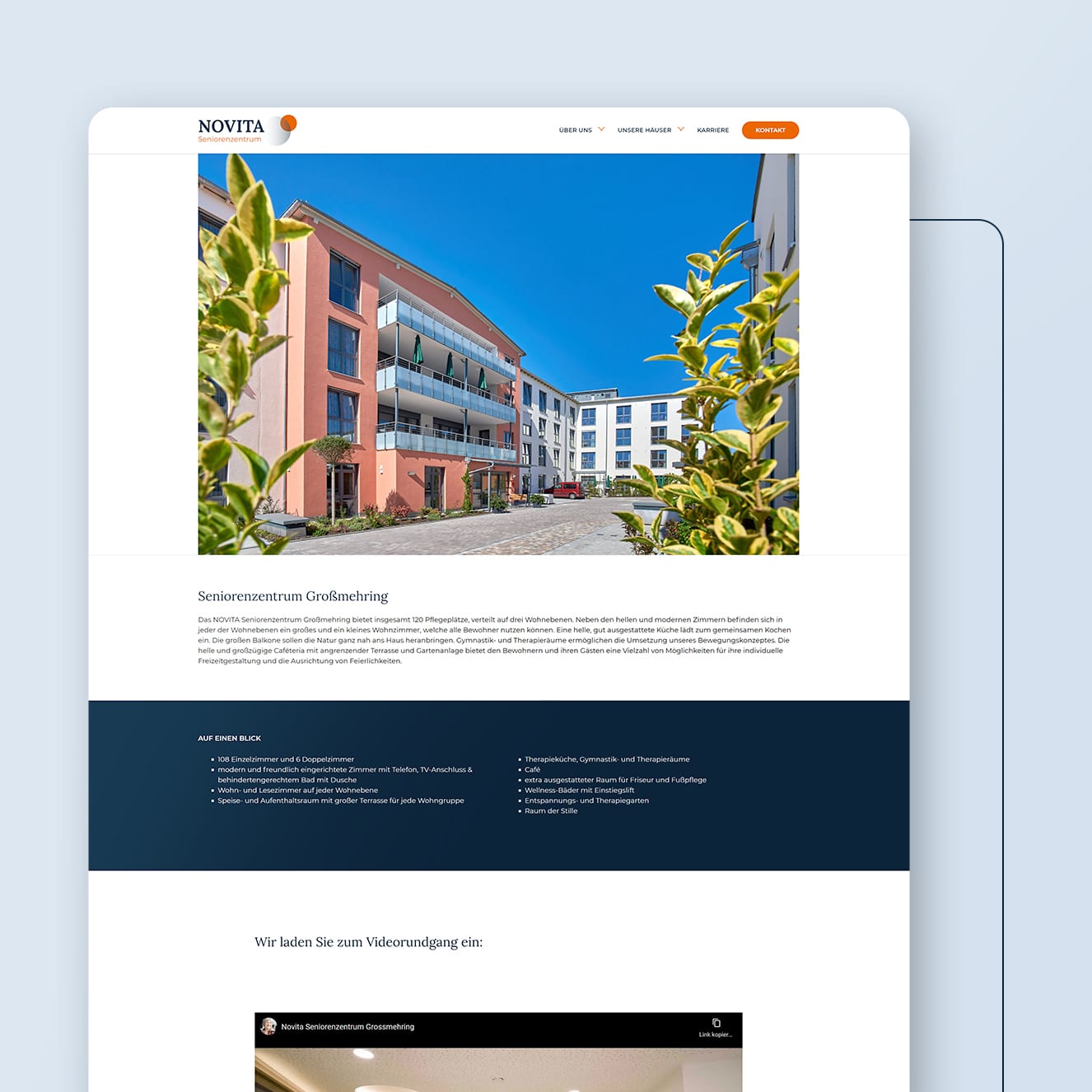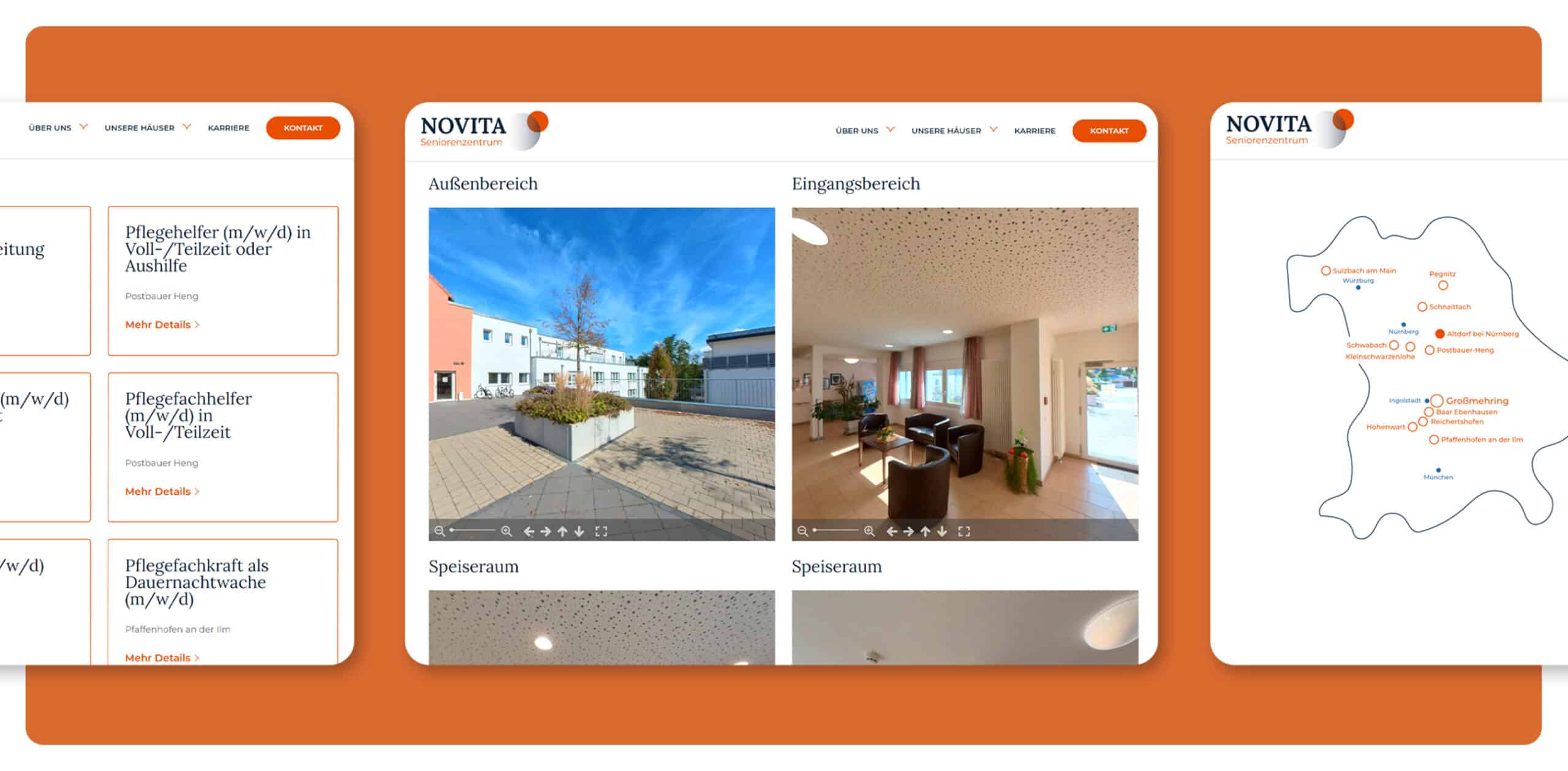 Die Novita GmbH beauftragte Matter & Lout mit einem Website Relaunch. Ein neues, modernes Konzept war das Ziel des Projekts. Hierfür erstellten wir nicht nur neue Icons, sondern auch eine neue Standortkarte der Seniorenzentren. Die neue Website bietet einen umfassenden Eindruck über die Häuser, Leistungen und Stellenangebote. Lebensfrohe Bilder, frische Farben und ein zurückhaltendes Design spiegeln die Werte des Kunden wider. Der minimalistische Look und der übersichtliche Aufbau der Website ermöglichen optimale Nutzerfreundlichkeit. Dadurch erschließt sich ein rundum schlüssiges Design.