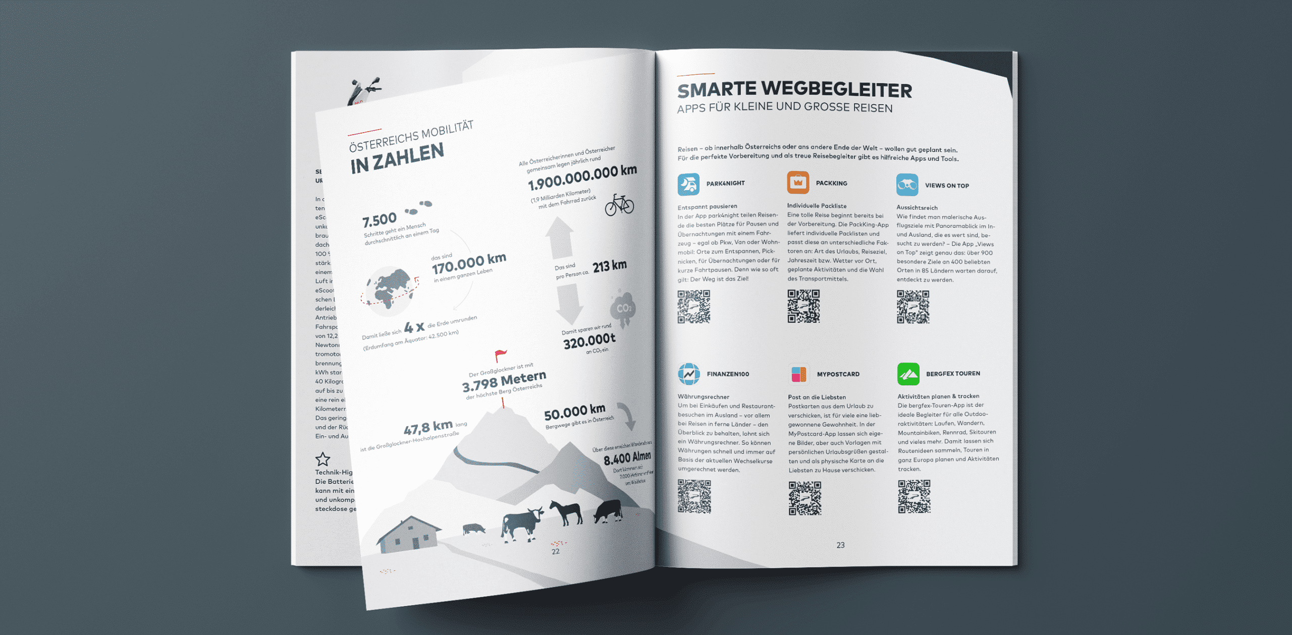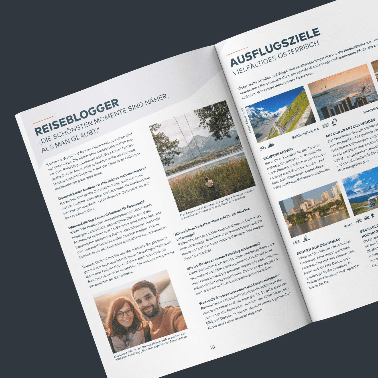 Hervorzuheben ist die sorgfältige Anwendung des Corporate Designs, bei der Infografiken, Diagramme und Icons präzise integriert werden. Das Kundenmagazin „In Bewegung“ von der Porsche Bank bietet somit nicht nur Einblicke in das umfangreiche Reiseangebot Österreichs, sondern präsentiert dies auch visuell ansprechend im Einklang mit der Markenidentität.