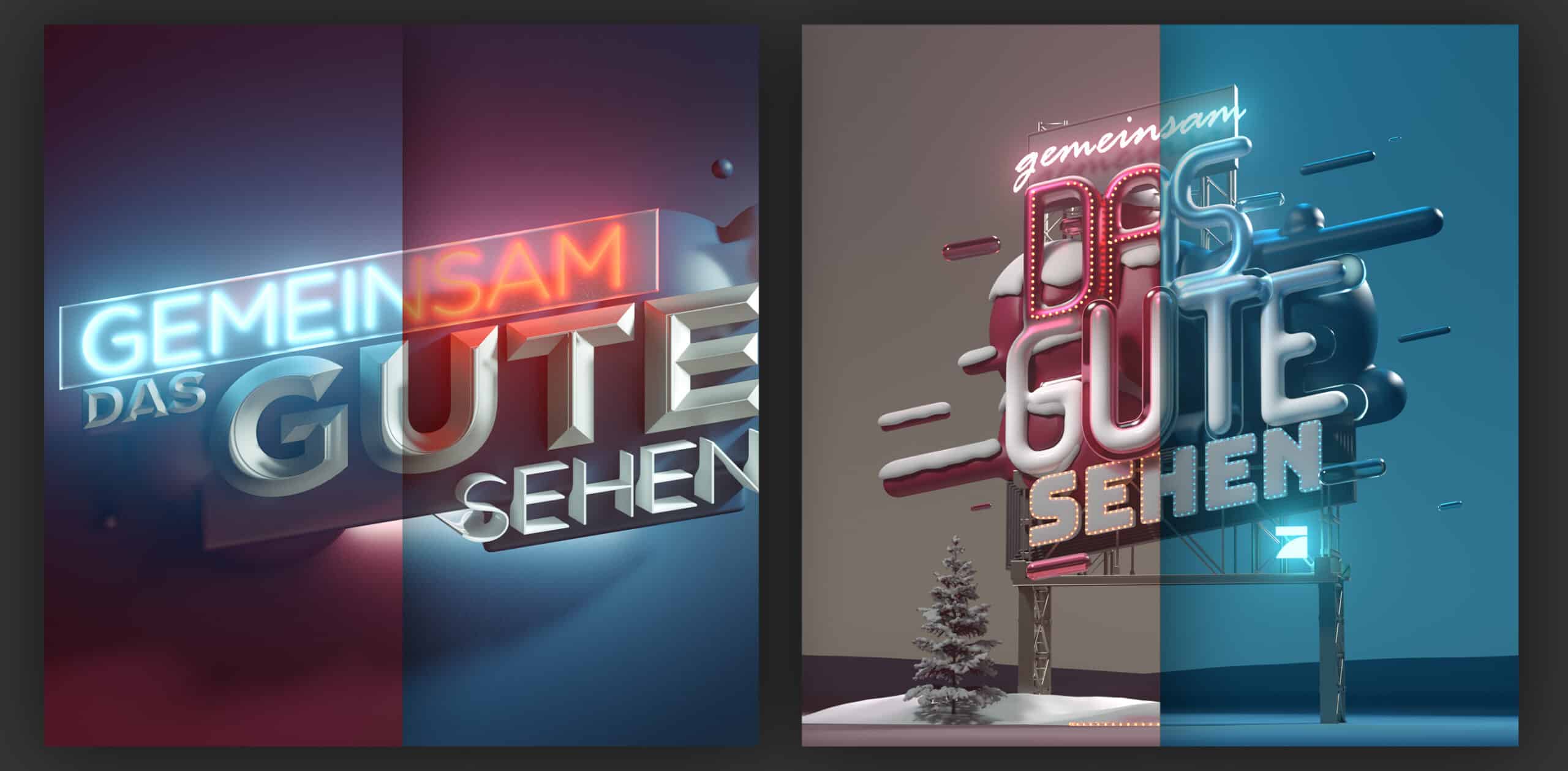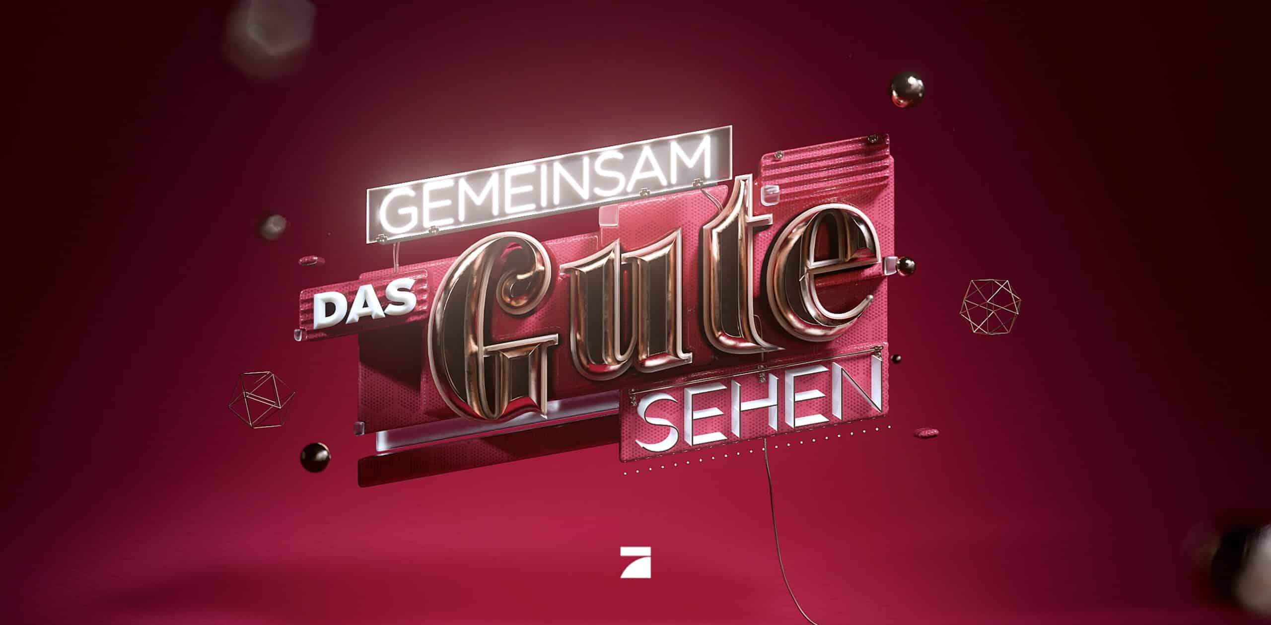 Die ProSiebenSat.1 Media SE heißt jetzt Seven.One Entertainment Group. Auch nach der Umstrukturierung steht Weder & Noch der Senderfamilie tatkräftig in der Konzeption und Kreation zur Seite. Für die Winterkampagne „Gemeinsam das Gute sehen“ lieferten wir das Key Visual der Kampagne sowie Werbeopener und -closer in verschiedenen Ausführungen. Diese wurden in unterschiedlichen Formaten sowohl On-Air auf ProSieben als auch auf Social Media verwendet. Neben der Gesamtkonzeption kümmerten wir uns dabei auch um die Erstellung der 3D-Assets und deren Animation. Für die Wintermonate wurde außerdem eine Adaption mit anderen Materialien, Schnee und Eiszapfen angeliefert.