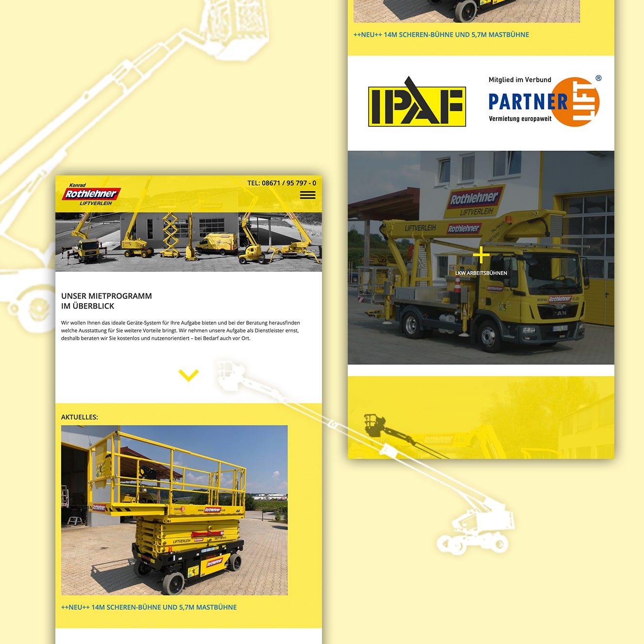 Rothlehner Liftverleih Website Kategorie Webdesign & Entwicklung Kunde Rothlehner Liftverleih Website Beschreibung Project team Zurück UNA-HAKRA Print Broschüre Weiter EIT München Website und Geschäftsausstattung
