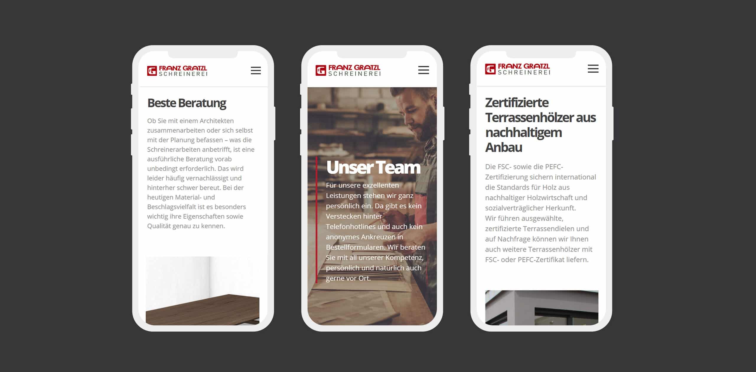 Weder & Noch setzte den Website Relaunch der Schreinerei Gratzl im modernen und frischen Design um. Bereits in der Konzeption achteten wir auf eine optimierte User Experience sowie auf das Prinzip „mobile first“. Bei der technischen Umsetzung wählten wir das Content Management System WordPress in der aktuellsten Version. Zusätzlich lag der Fokus auf den SEO-Themen. Zum einem erarbeiteten wir die technische SEO-Optimierung, zum anderen verfassten wir die Texte mit relevanten Keywords. Eindrucksvolle Bilder verleihen der Website ihre einzigartige Optik.