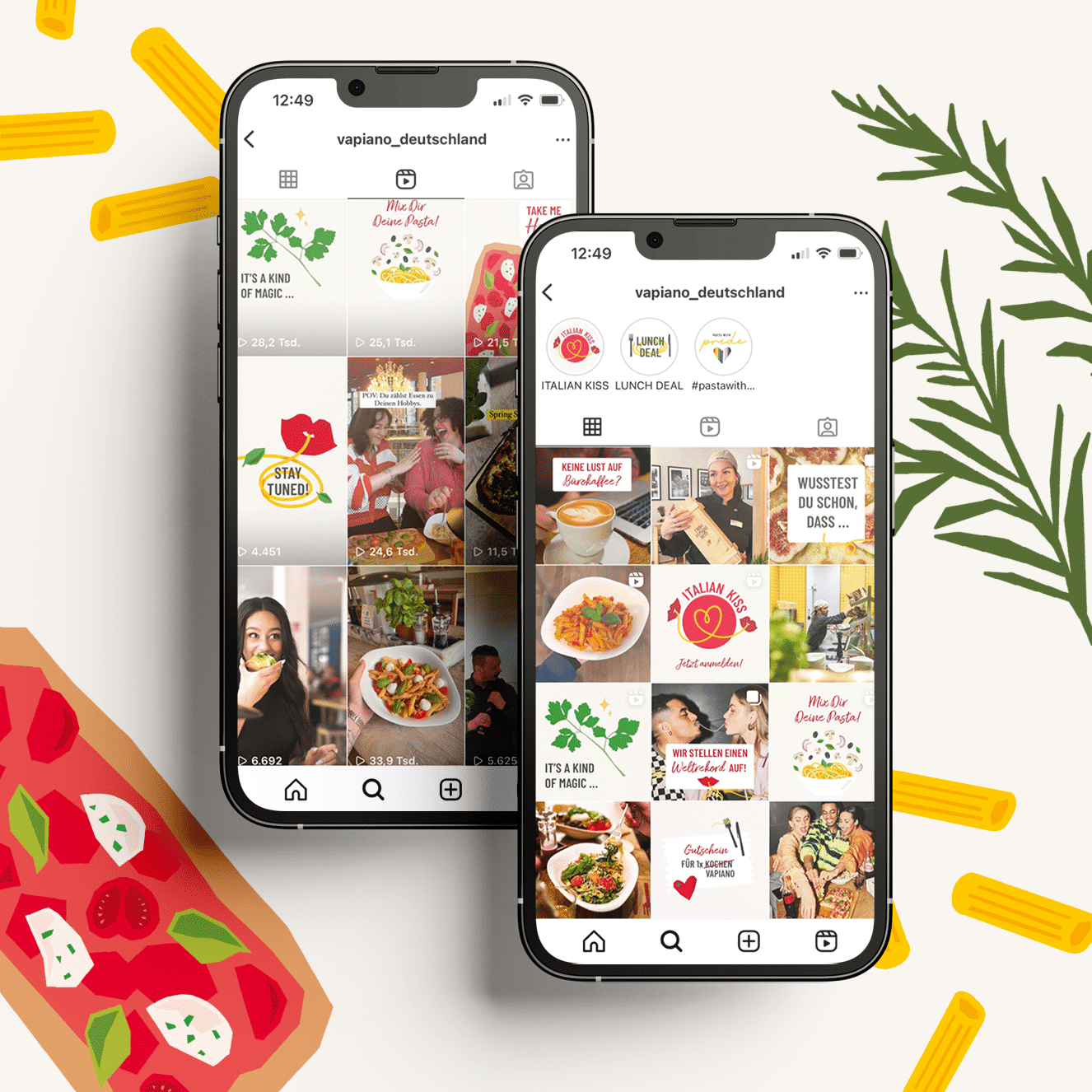 Für VAPIANO Deutschland übernimmt MATTER & LØUT die organische Social Media Betreuung bei Instagram und Facebook inklusive des paid Supports. Der Fokus liegt hier auf der vollumfänglichen Betreuung inklusive der Neukonzeption des Instagram-Grids, der Erstellung eines Redaktionsplans, der Veröffentlichung von Feed-Beiträgen, Reels und Stories und dem Community Management. Zusätzlich dazu konzeptionieren wir organische und paid Kampagnen von Events, die wir in enger Absprache mit dem Kunden umsetzen.