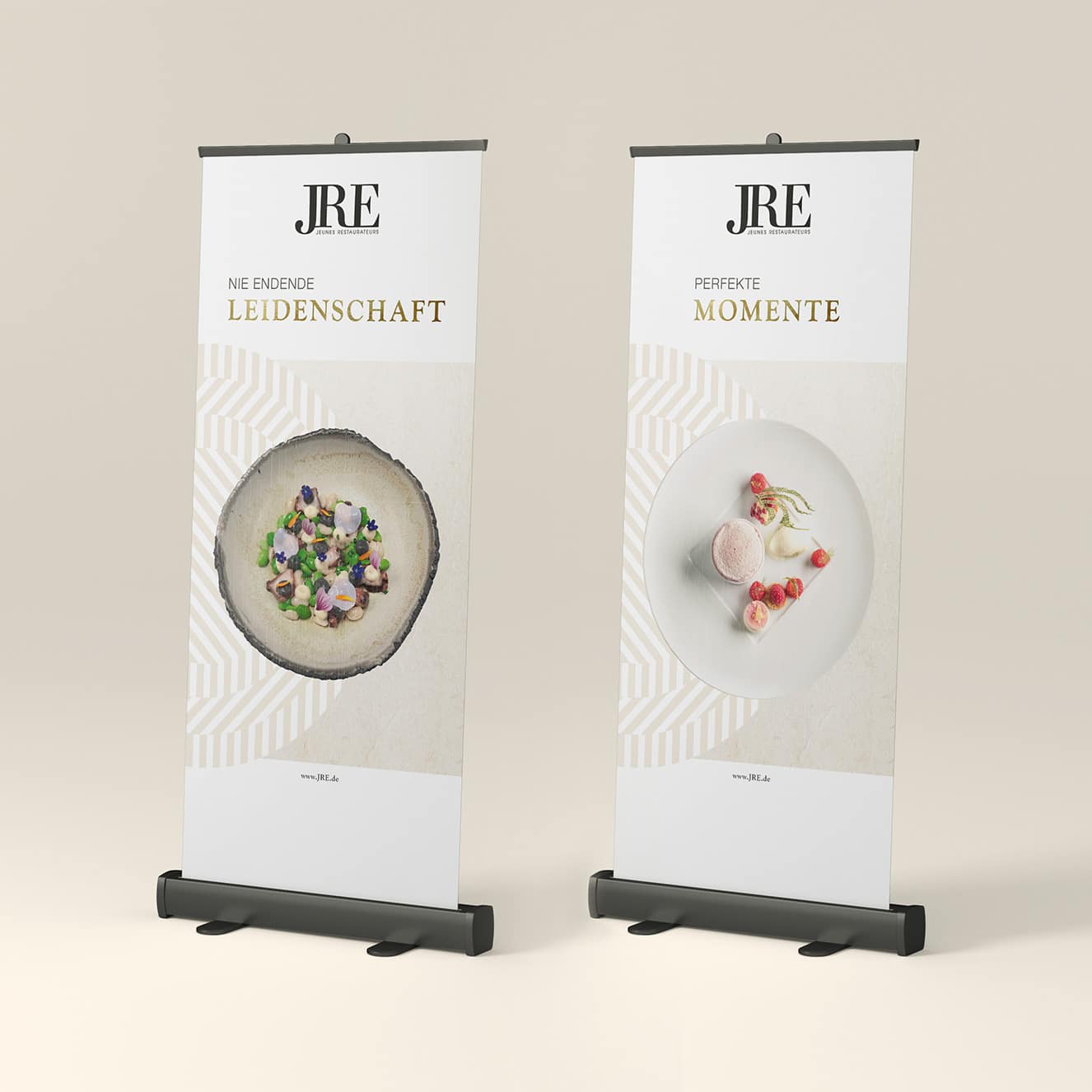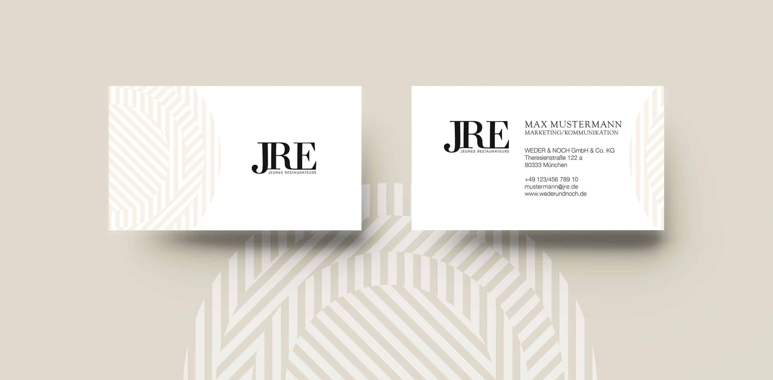 Die Jeunes Restaurateurs Deutschland, eine Vereinigung von jungen Spitzenköchen ausgezeichnet mit über 50 Sternen, werden von Weder & Noch in allen marketingrelevanten Themen betreut. Um eine Einheitlichkeit in den Designs zu erreichen, wurde im ersten Schritt das Corporate Design der JRE Deutschland überarbeitet. Auf Grundlage der Corporate Design Vorgaben der europäischen Muttervereinigung wurden einige Elemente für das deutsche CD erweitert. So wurden beispielsweise Anwendungsfälle definiert und Designelemente mit aufgenommen. Durch die Variationen wurde ein offenes Design geschaffen – für eine Außendarstellung, in der die Moderne mit der Eleganz kombiniert ist.