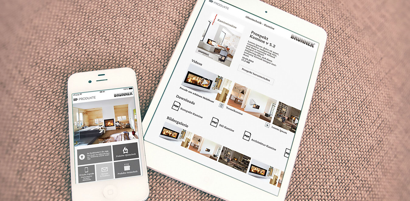Für die Ulrich BRUNNER GmbH haben wir das User Interface Design für die neuen iOS Apps entwickelt. Herausforderung war die sehr komplexe und umfangreiche App möglichst benutzerfreundlich, übersichtlich und strukturiert zu gestalten. Wir haben Produktübersichtsseiten entworfen, auf denen alle zur Produktgruppe gehörenden Elemente übersichtlich aufgeführt sind. Ähnlich wie beim Konzept des App-Stores wurde die Vielzahl der Bilder, Videos, Prospekte und Downloads über seitliche Slider organisiert. So konnten wir eine Überladung der einzelnen Seiten vermeiden. Die technische Umsetzung übernahm hierbei die evanto media AG aus Regensburg.iOS_App_UI_duoiOS_App_UI_iphone2iOS_App_UI_iphone