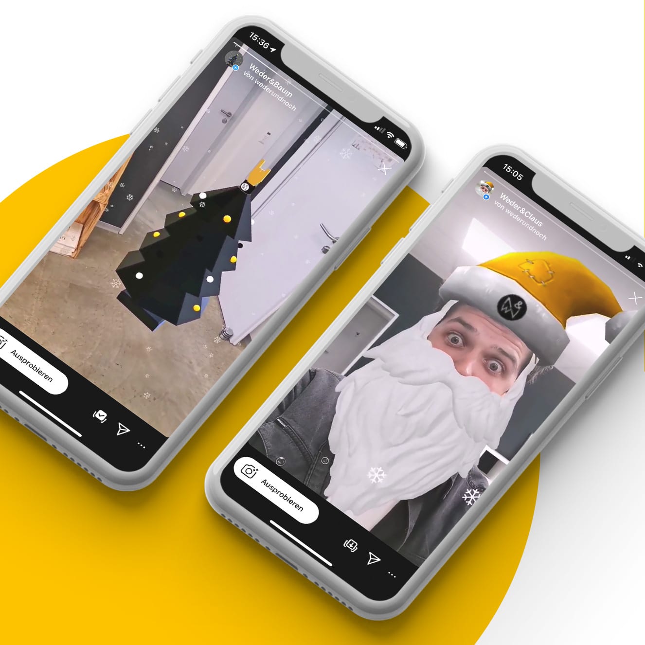 Auch unser beliebter Weder & Noch Wandkalender, den unsere Kunden jedes Jahr zu Weihnachten erhalten, erwacht so zum Leben. Einfach ausprobieren: Zielt mit dem entsprechenden Instagram Filter auf den Kalender und seht, wie wir mit dem Weder & Noch Instagram Facefilter über den Dingen schweben. Alle unsere Facefilter findet ihr auf Instagram unter @wederundnoch.